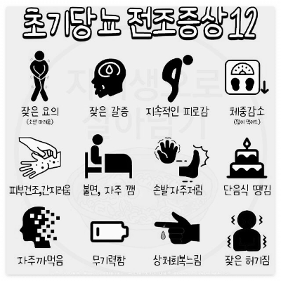"잦은 소변"은 혈당이 높아져 신장이 과도하게 일을 하게 되는 신호입니다.