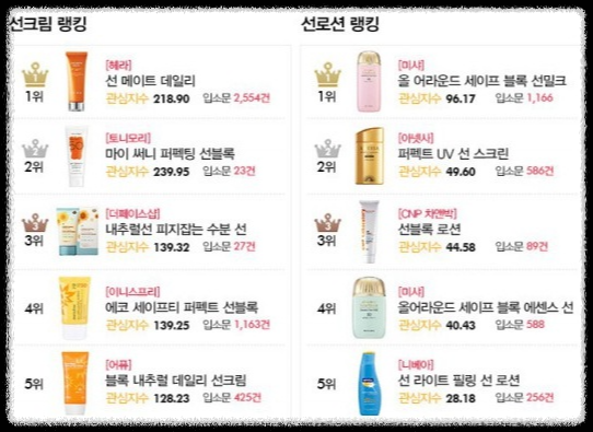 - 야외활동 많음 → SPF50+, 워터프루프, 지속력 강한 제품