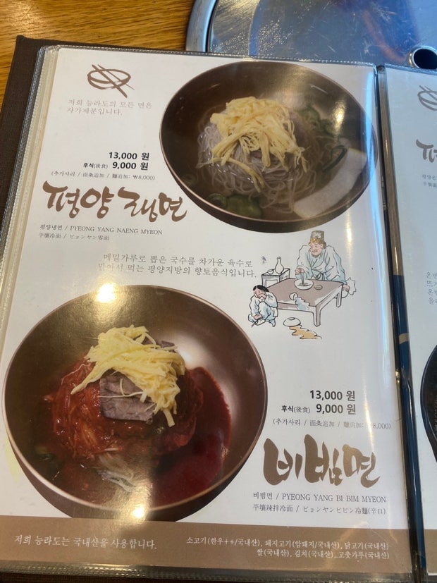 ✔️ 종류: 평양냉면, 갈비탕